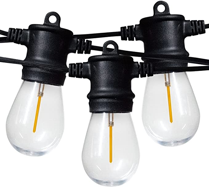 The LED bulbs are made of plastic and much safer and durable than traditional glass bulb, which won't break if dropped. Strand Led lighting is weather and water resistant and intended for temporary outdoor use only.