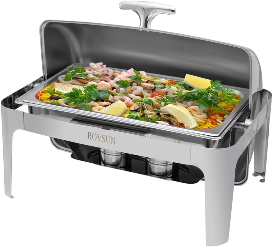 Upgrade your catering game with our premium 9 qt. rolling chafing dish. This elegant food warmer is perfect for keeping your delicious dishes at the optimal serving temperature during events and gatherings. The roll top design adds a touch of sophistication to your buffet setup, impressing your guests and enhancing the overall dining experience.